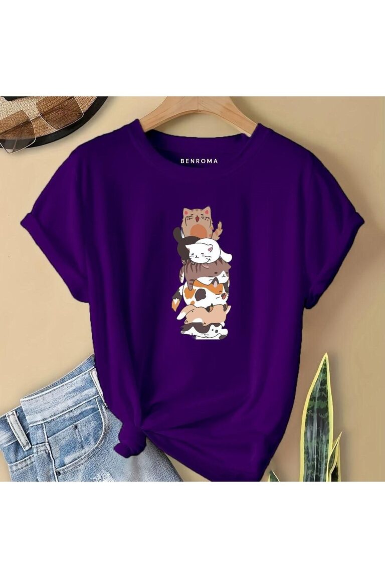 ÜST ÜSTE KEDİLER BASKILI ÇOCUK TİŞÖRT